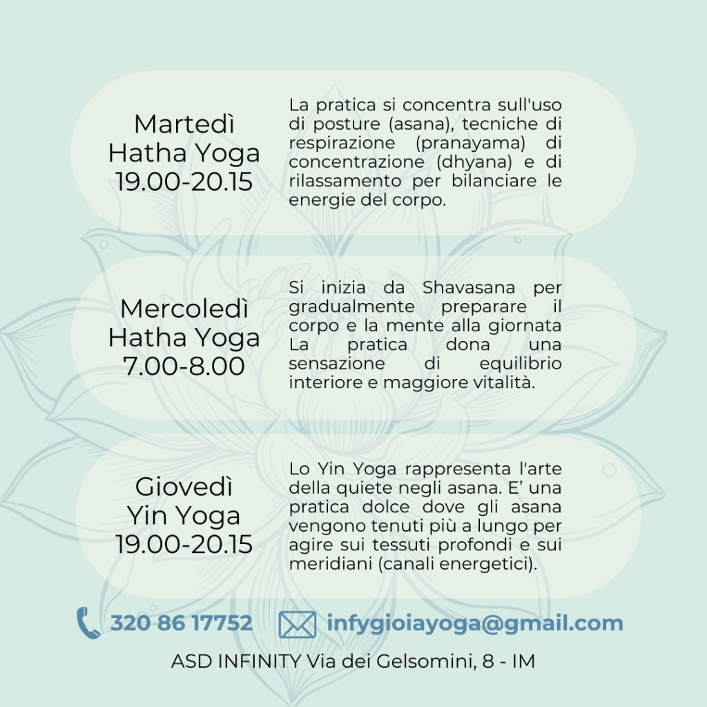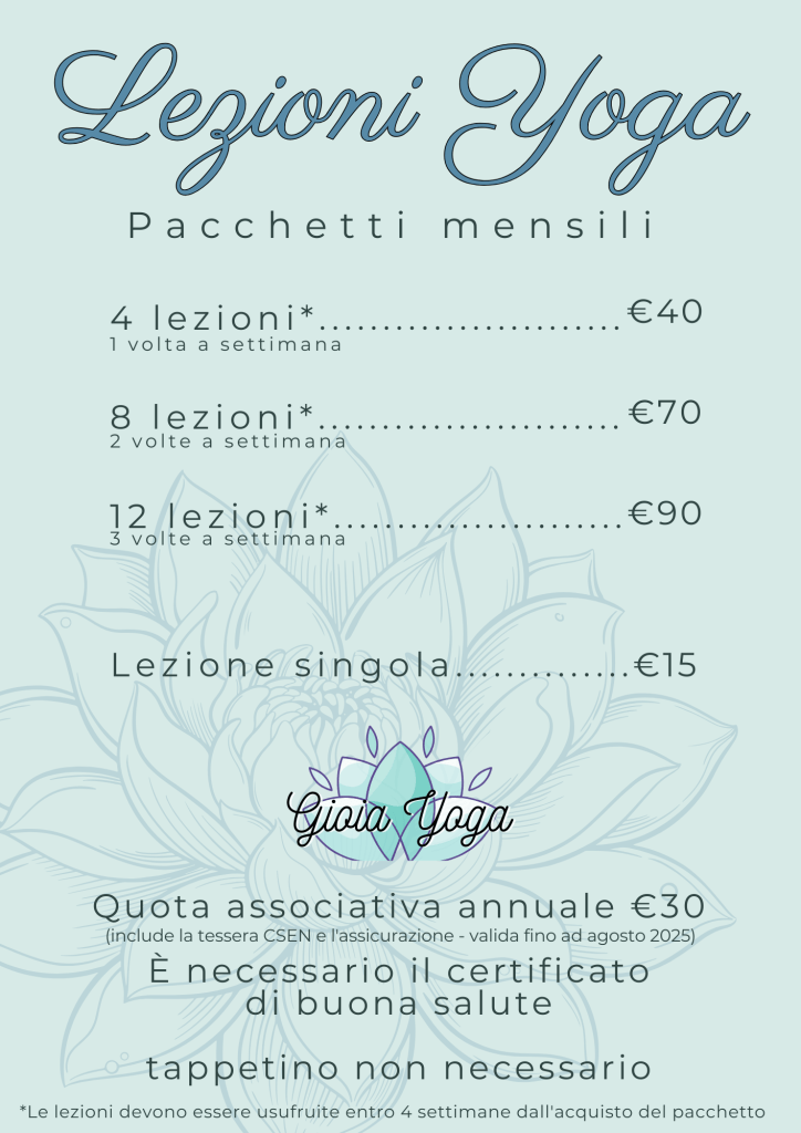 Sono disponibili anche pacchetti per partecipare sia ai corsi Yoga che di Ginnastica Aerea, trovi qua sotto il prezzario e qua le informazioni sui corsi Ginnastica Aerea.